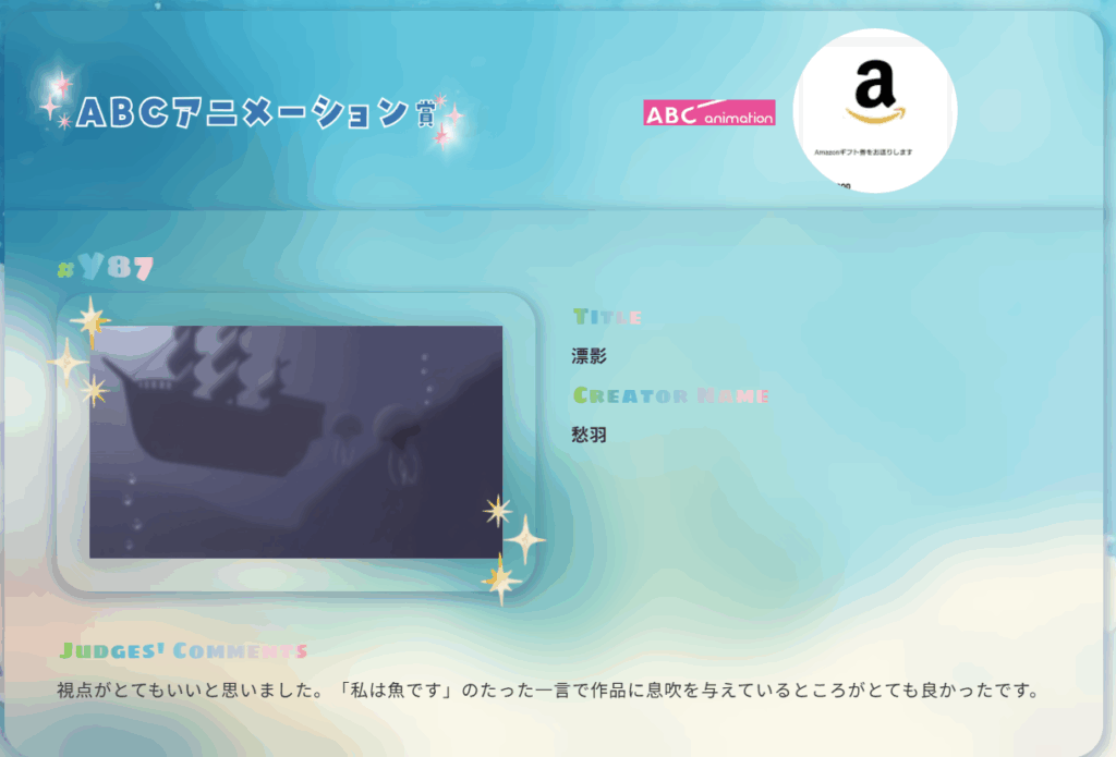 コンテストのテーマは「旅」だったのですが、魚視点で旅を表現する着想も素晴らしいですし、海の中の世界観もうまく表現されていますよね。